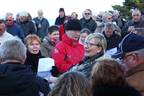 Over 120 medlemmer af grundejerforeningen og andre venner af trappen gjorde den 13. november til en festdag. Solen strålede og vinden susede da borgmester Jan Ferdinansen foretog den officielle indvielse af vores flotte nye trappe. Og så blev ”trappesangen” sunget med kraftige og glade stemmer.