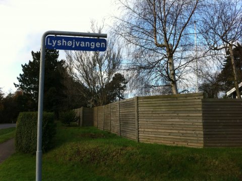 Vejskiltet ved indkørslen til Lyshøjvangen er nu atter på plads. Skiltet forsvandt på mystisk vis for ca. et år siden – og er fornylig dukket op igen – også på mystisk vis.... Men godt at det dukkede op for vi er som grundejerforening ansvarlig for skiltningen (privat offentlig vej).