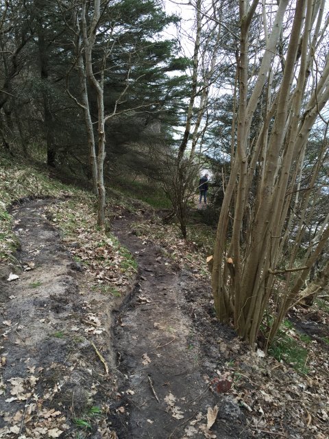 Lige før udsigtsplatformen (se billedet på forsiden) er der nu etableret en trampesti til venstre mod vest (mod Gilleleje) langs med skrænten.