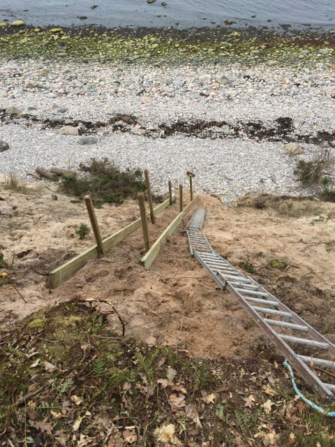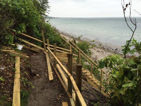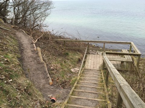 Efter 50 meters vandring mod vest, så kommer man til det udvalgte sted, hvor den sidste del af trappen får sit nye forløb ned mod stranden.